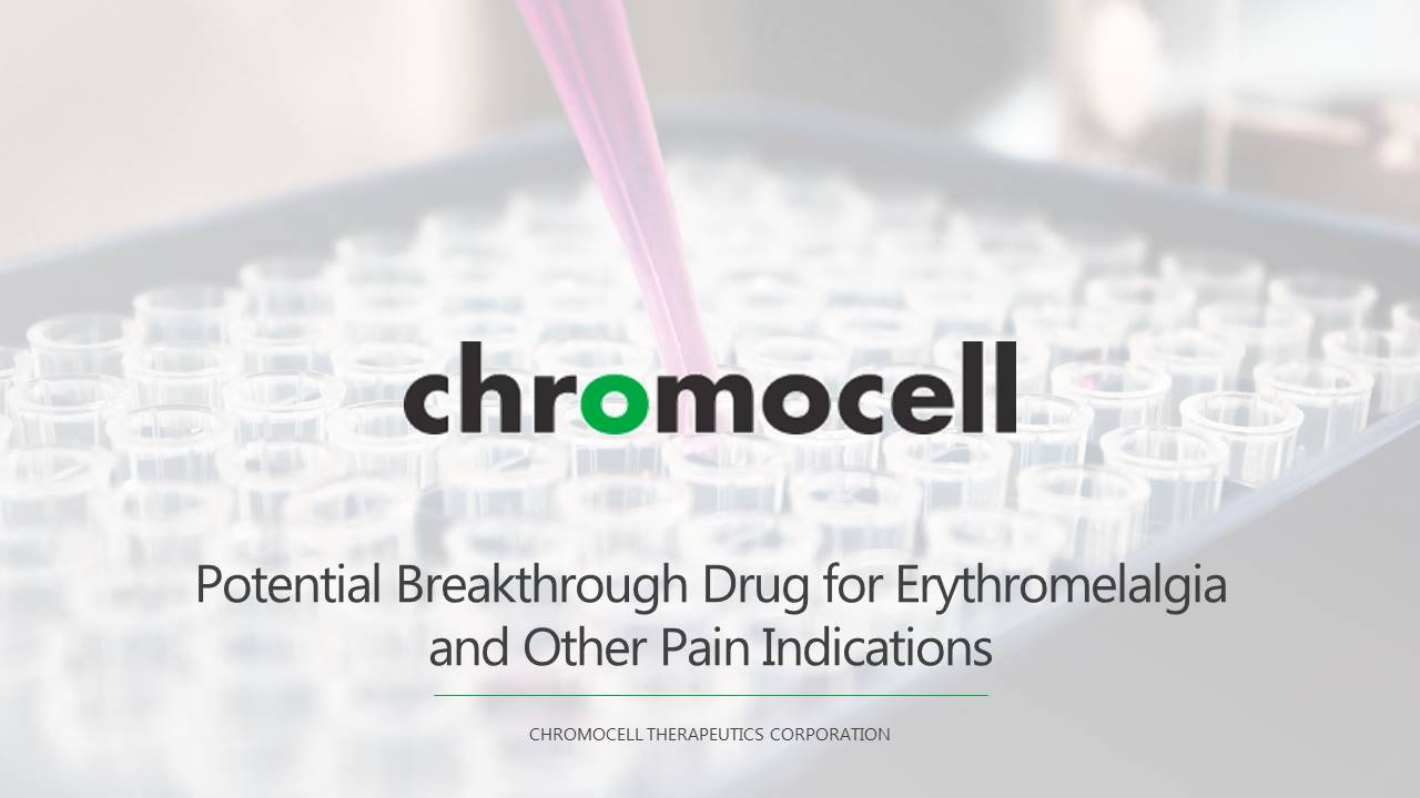 CHROMOCELL THERAPEUTICS CORPORATION 1 CHROMOCELL THERAPEUTICS CORPORATION Potential Breakthrough Drug for Erythromelalgia and Other Pain Indications