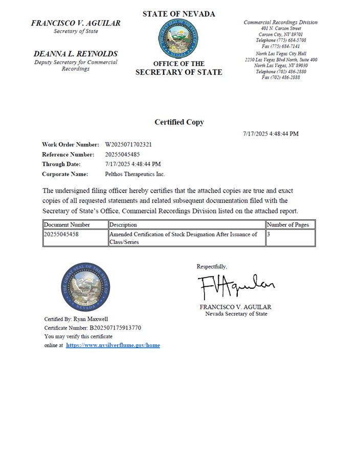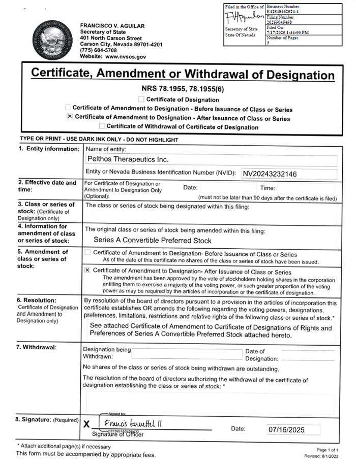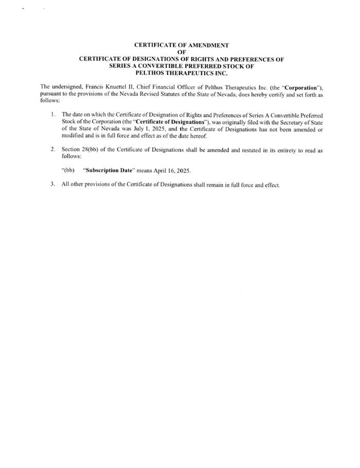 1. I have reviewed this quarterly report on Form 10-Q of Pelthos Therapeutics Inc.;