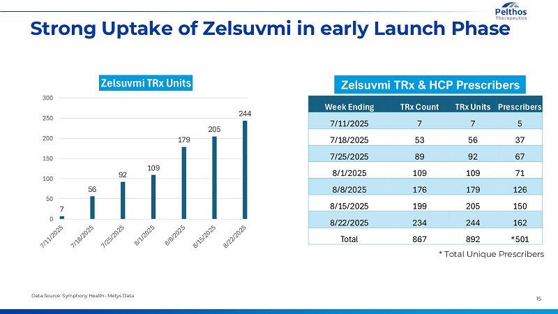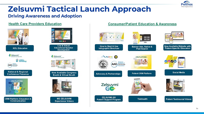 14 Zelsuvmi Tactical Launch ApproachDriving Awareness and Adoption Health Care Providers Education Consumer/Patient Education & Awareness National & Regional Conference Presence Live & Virtual Educational Speaker Development KOL Education Now Available Congress Booth & Virtual Booth MD ZELSUVMI Experience Videos CRM Platform: Education & Communication Telehealth ZELSUVMI GO Patient Support Program How to Start & Use Infographic Brochure Now Available Website with Patient-Specific Education Patient CRM Platform Social Media Banner Ads, Native & Paid Search Patient Testimonial Videos Advocacy & Partnerships