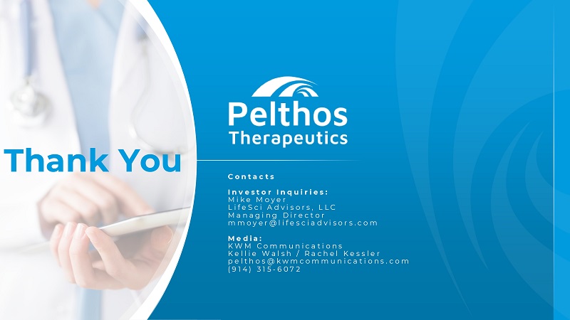 21 Thank You ContactsInvestor Inquiries:Mike MoyerLifeSci Advisors, LLCManaging Directormmoyer@lifesciadvisors.comMedia:KWM CommunicationsKellie Walsh / Rachel Kesslerpelthos@kwmcommunications.com(914) 315-6072