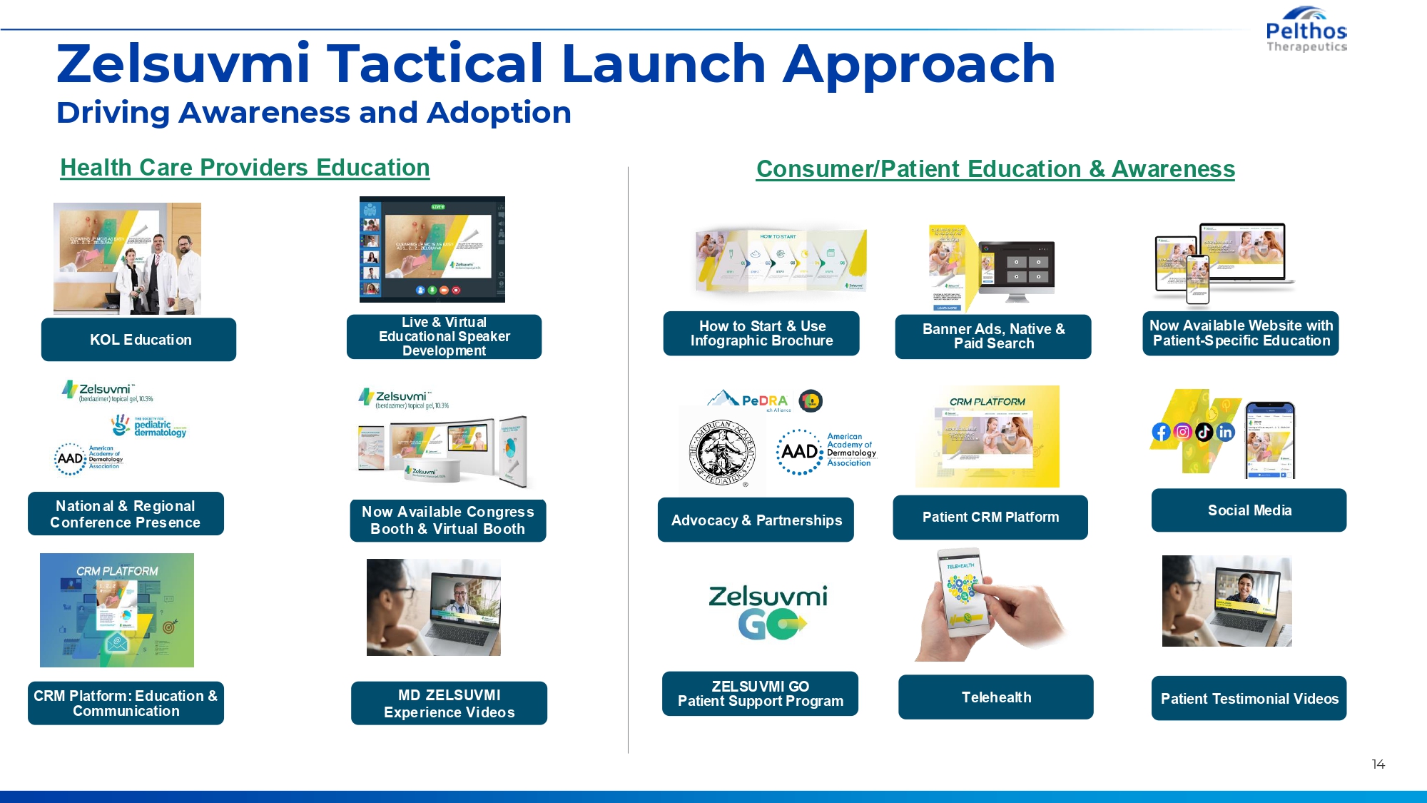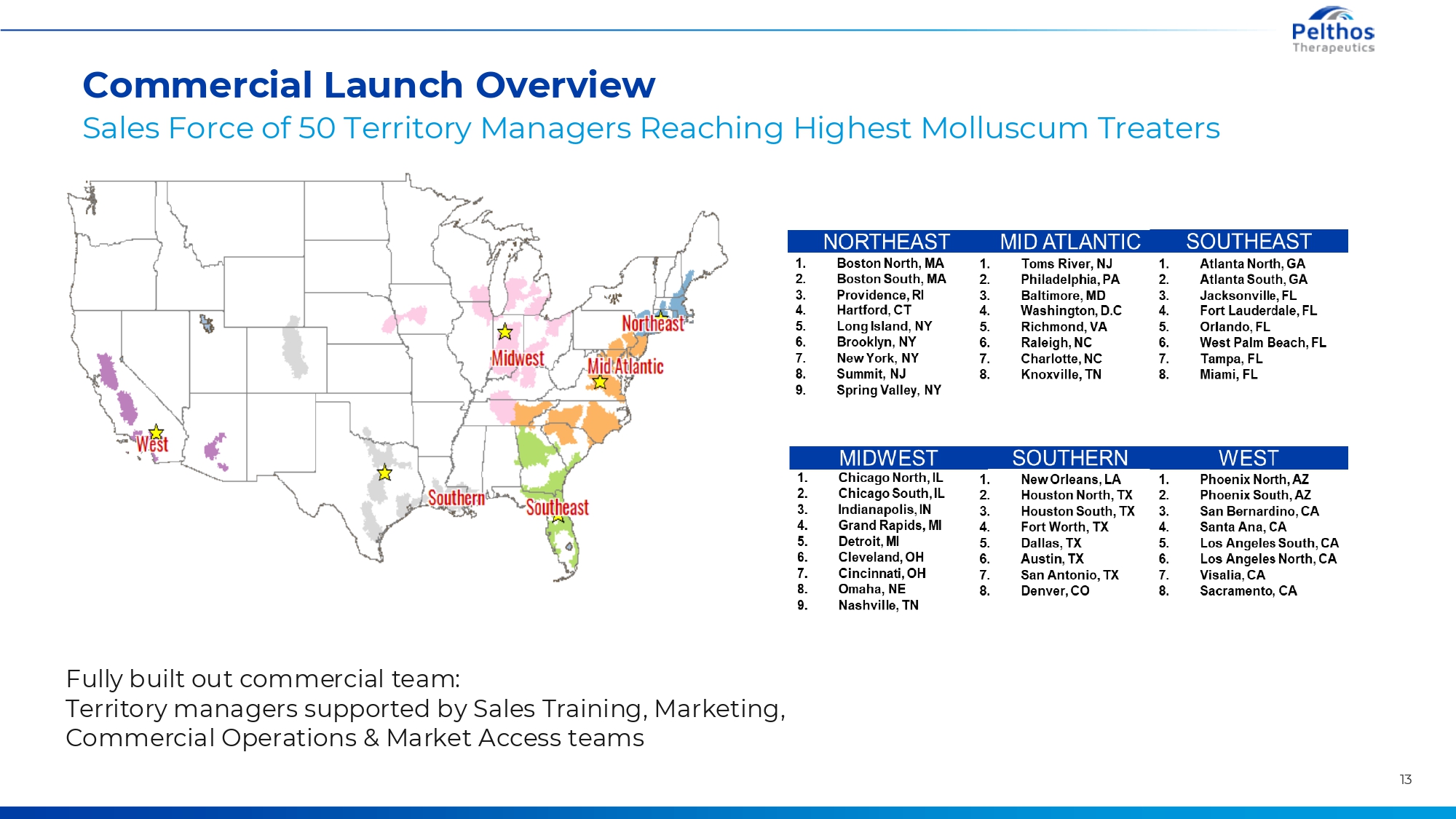 Activating Key Leverage Points Is Essential to Maximize the Commercial Potential of Zelsuvmi Key Leverage Points 01 Up to 6 million new cases each year with an average untreated resolution time of 13 months, during which disease is highly contagious 02 Treated patients respond well to Zelsuvmi and experience dramatic reduction in lesion count and mean time to resolution Refills 03 FDA approved for 12-week treatment regimen, but internal forecasts assume lower Price and Revenue 04 WAC of $1,950 per unit. Disclosed peak net revenues of $175M per annum by 2028 Addressable Patient Population Treated Patients / Initial Prescriptions 12